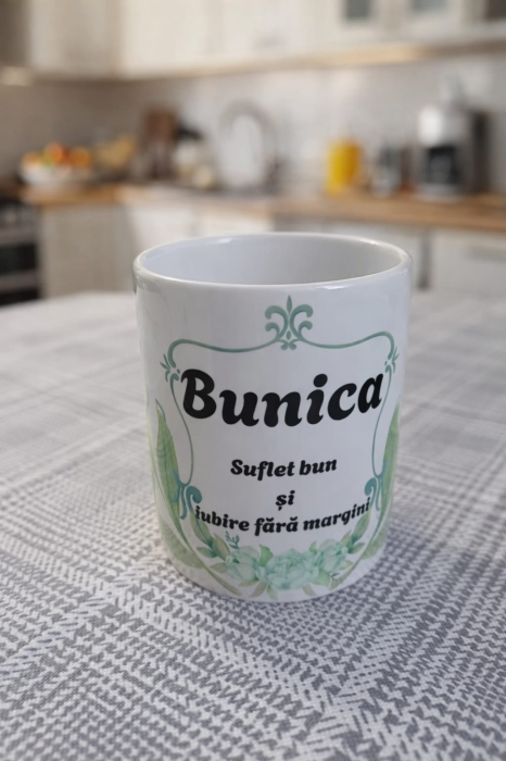 O cană specială dedicată celei mai iubitoare persoane din familie. Mesajul „Bunica – Suflet bun și iubire fără margini” transmite emoție și recunoștință, transformând fiecare cafea sau ceai într-un moment plin de căldură.